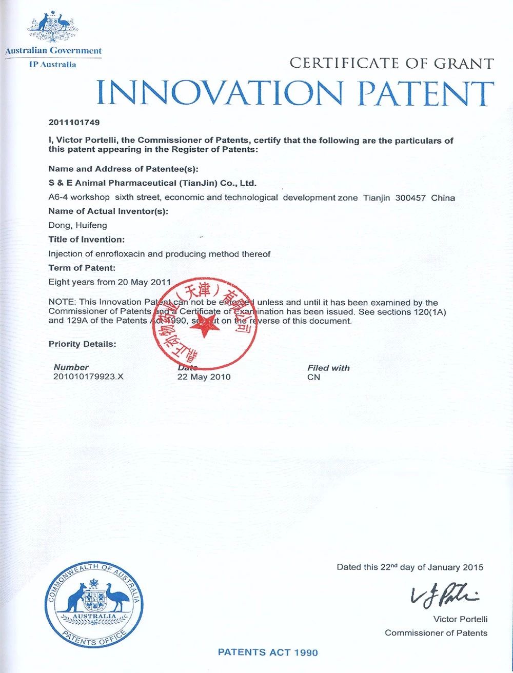 专利号:ZL2010 10 179636.9